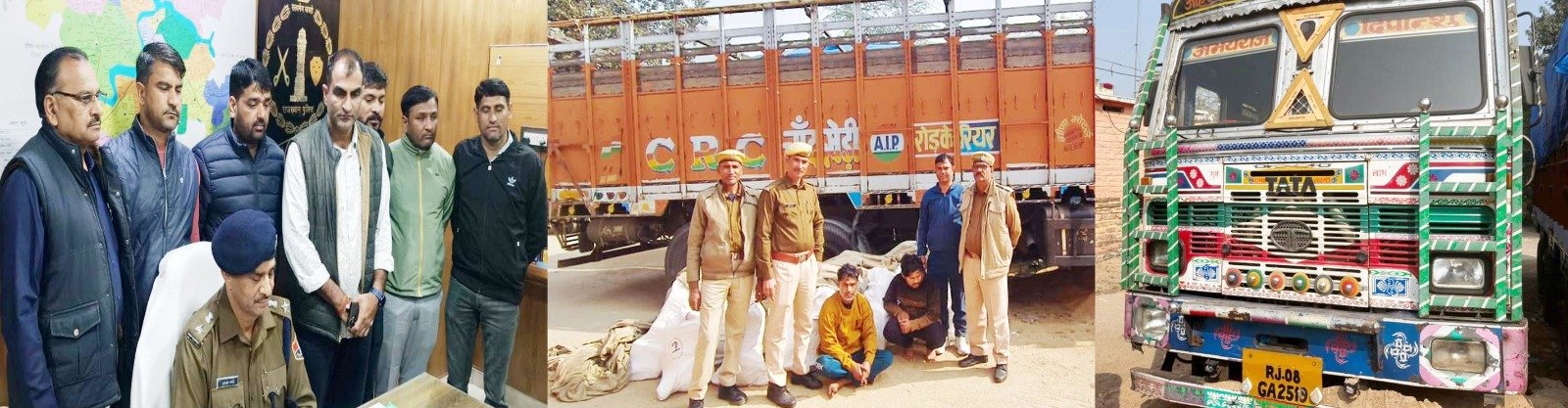 टोंक। जिले के युवाओं व लोगों को नशे के दलदल में धकेलने की एक बहुत बड़ी साजिश को टोंक पुलिस ने अपनी बहादुरी और सटीक रणनीति से नाकाम कर दिया है। पुलिस अधीक्षक राजेश कुमार मीना के कुशल निर्देशन में जिला स्पेशल टीम ( DST )ने नेशनल हाईवे 52 पर एक बड़ी कार्रवाई करते हुए उड़ीसा से तस्करी कर लाए जा रहे 500 किलोग्राम अवैध मादक पदार्थ गांजे की खेप को पकड़ा है।