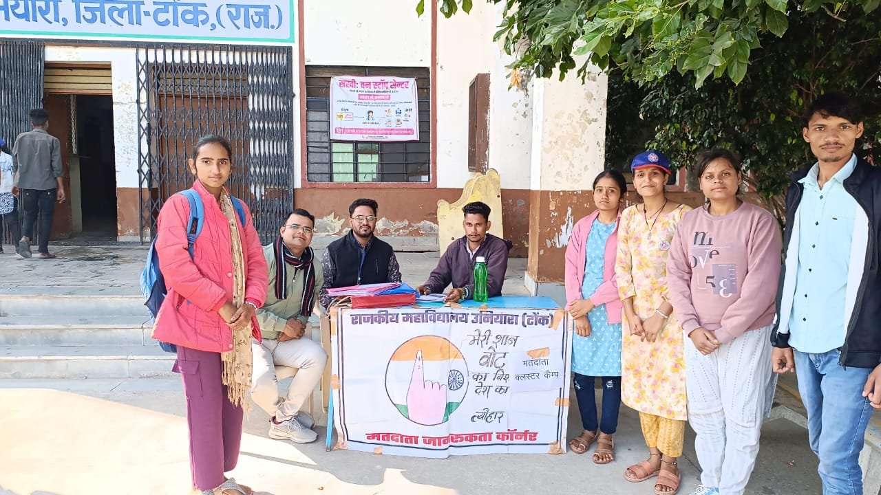 टोंक। भारत निर्वाचन आयोग तथा मुख्य निर्वाचन अधिकारी राजस्थान के निर्देशानुसार सोमवार को जिला निर्वाचन अधिकारी कल्पना अग्रवाल के निर्देशन में जिले के विभिन्न शिक्षण संस्थानो में युवा मतदाता श्रेणी के लिए जागरूकता के लिए कैंप आयोजित किए गए कलस्टर स्वीप नोडल अधिकारी सीईओ परशुराम धानका ने बताया कि मतदाता सूचियों के विशेष गहन पुनरीक्षण कार्यक्रम 2026 के तहत दावे व आपत्तियां निस्तारित की जा रही हैं।