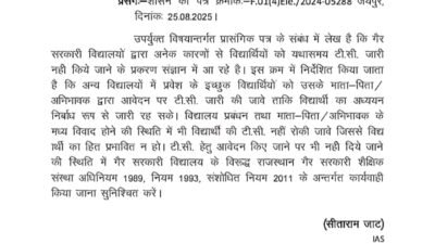 भीलवाड़ा सरकारी और निजी स्कूलों का समय बदलाभीलवाड़ा / अमन ठठेरा । जिले में पढ़ रही प्रचंड गर्मी को देखते हुए जिला कलेक्टर जसमीत सिंह संधू ने भीलवाड़ा जिले की सभी सरकारी... By Sameer Ur Rahman | April 26, 2026